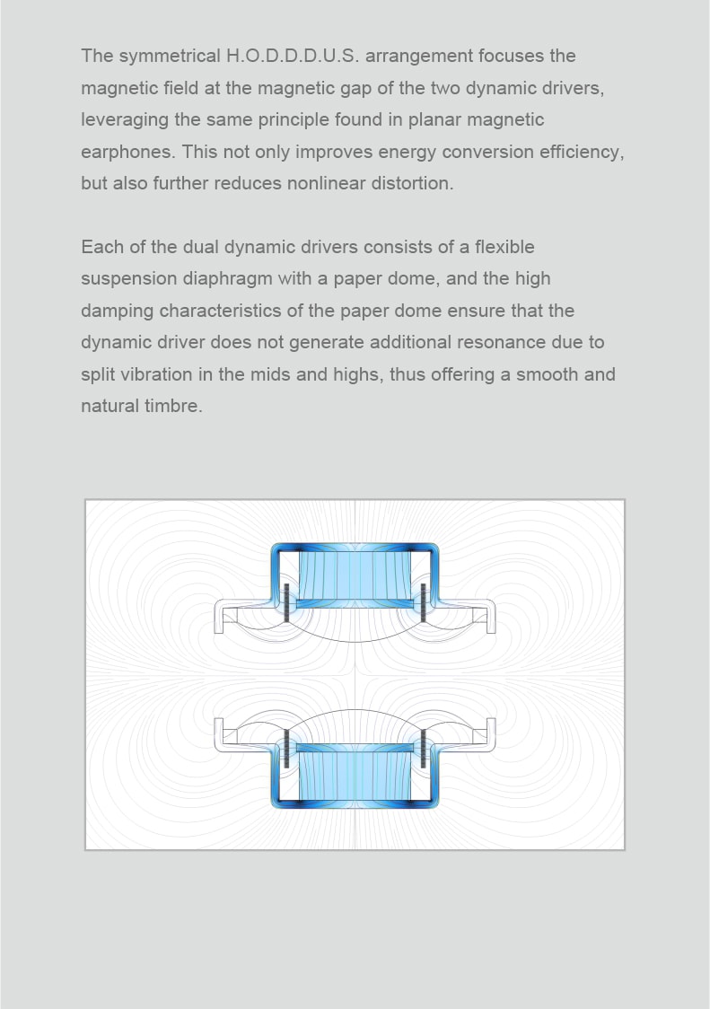 3. The new scientifically-designed horizontally-opposed double dynamic driver module further demonstrates the advantages of the hybrid earphone in bass dynamics.