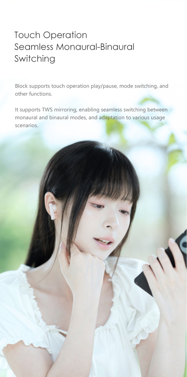 It supports TWS mirroring, enabling seamless switching between monaural and binaural modes, and adaptation to various usage scenarios.