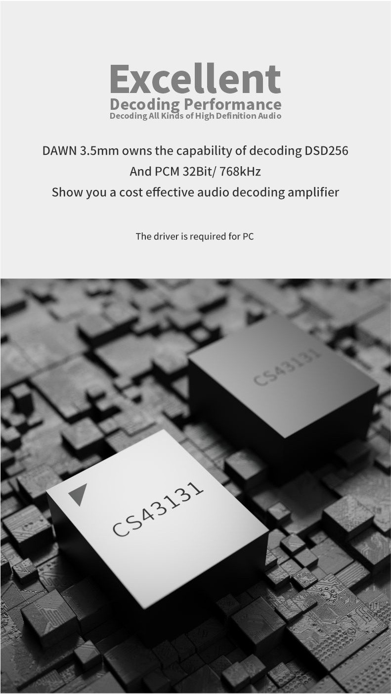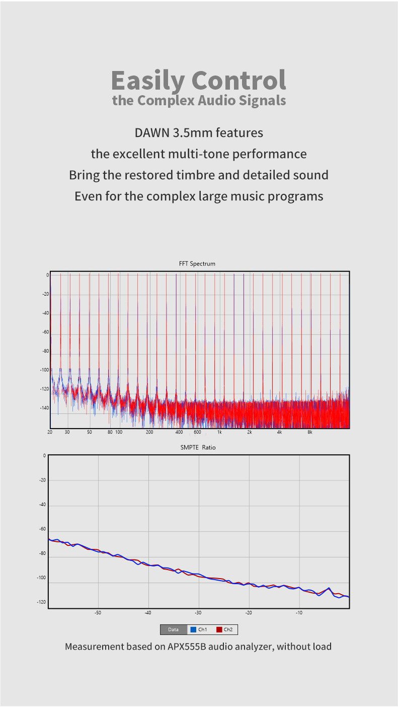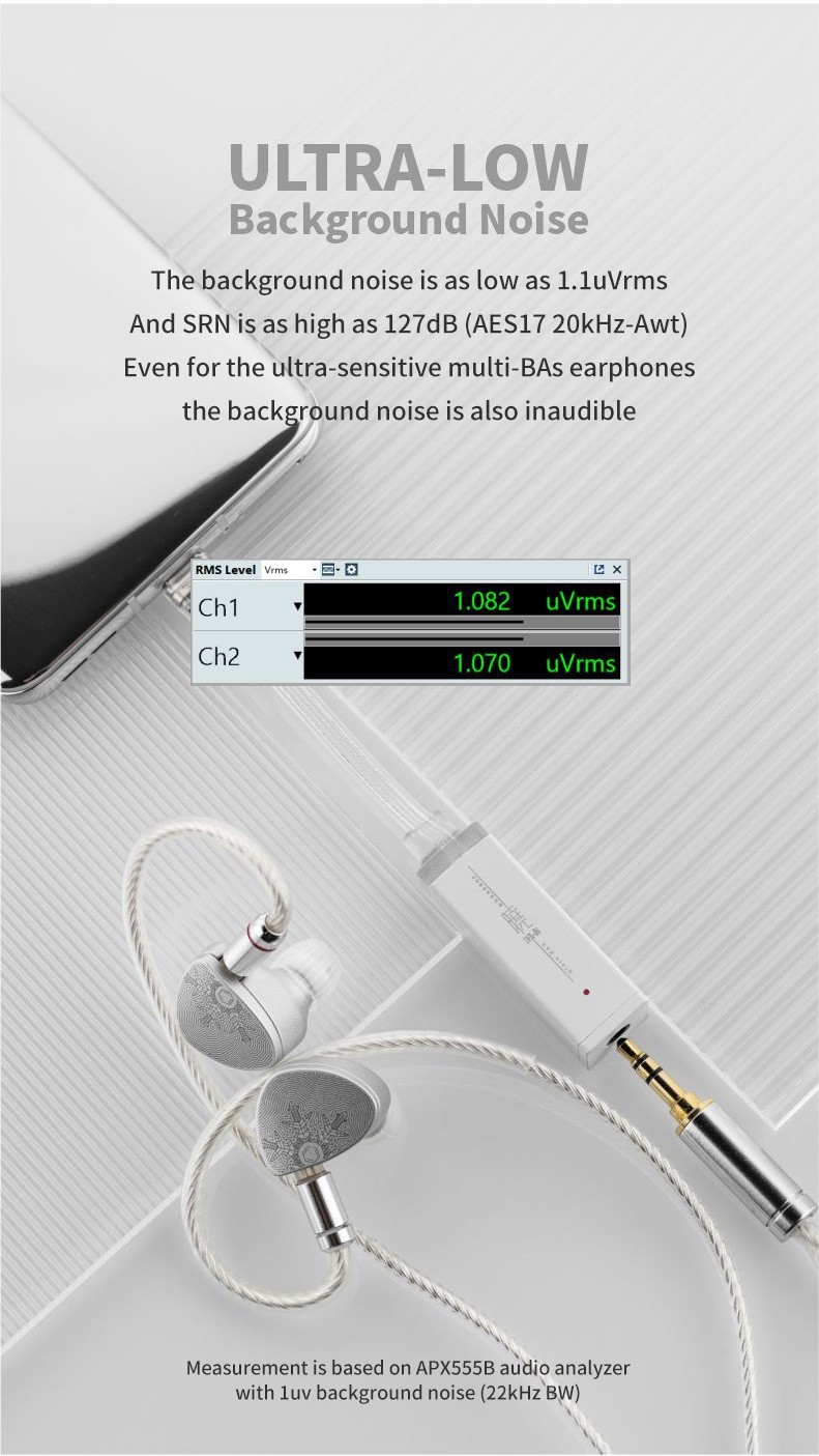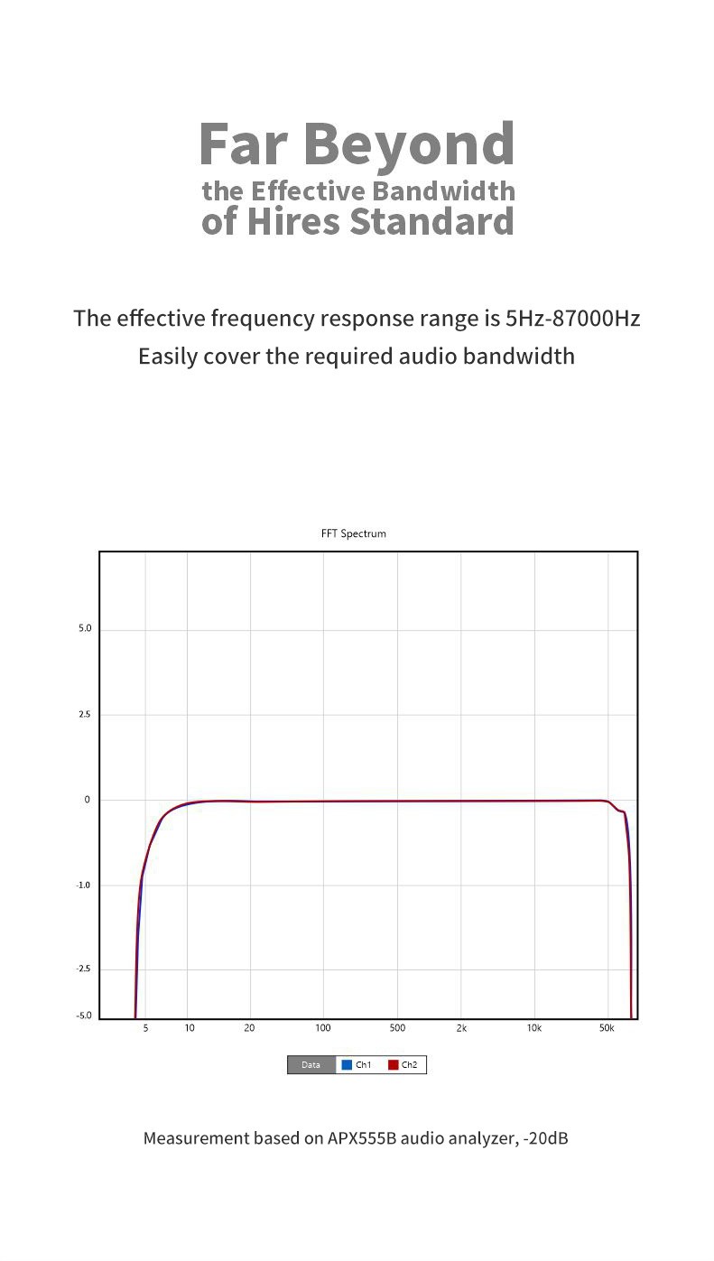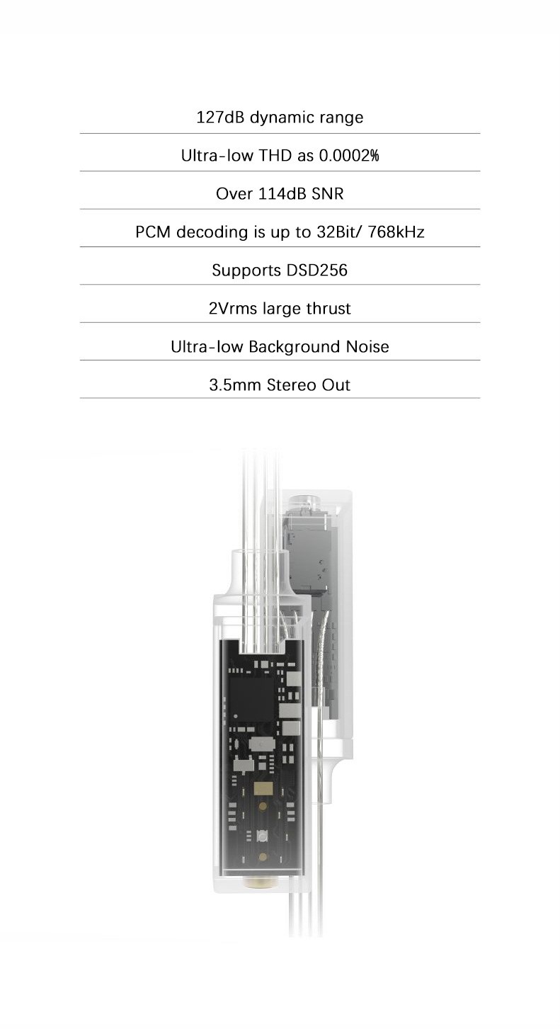 1. Double chips configuration, combines with two CS43131 chips and excellent circuit design to access the performance close to the theoretical value of the chip.