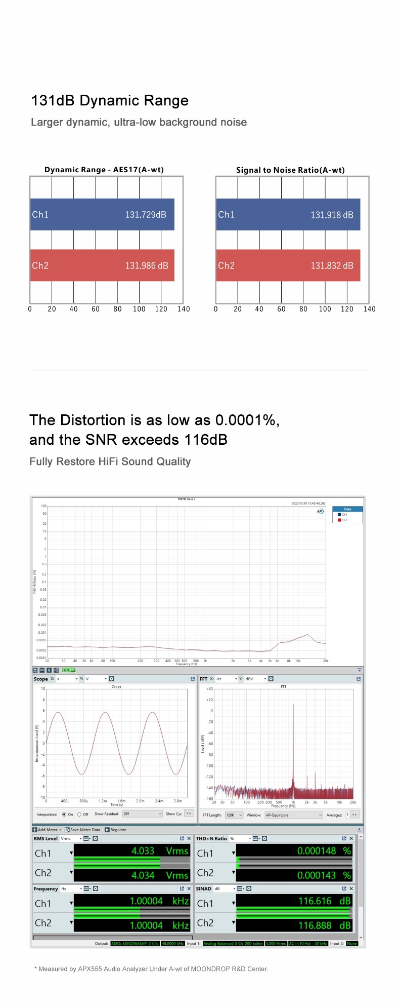 Dynamic Range: 4 4mm: 132dB (A-wt)