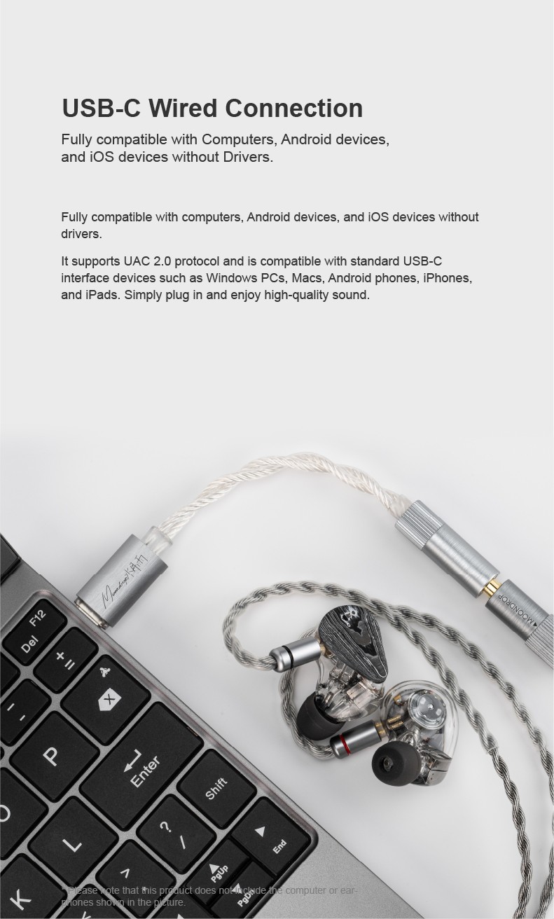 USB-C Wired Connection, Fully compatible with computers, Android devices, and iOS devices without drivers.