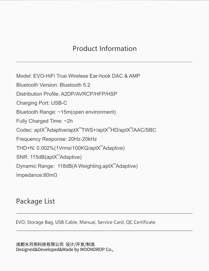 Model: EVO-HiFi True Wireless Ear-hook DAC & AMP