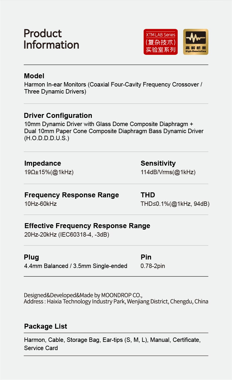 Model: Harmon In-ear Monitors (Coaxial Four-Cavity Frequency Crossover / Three Dynamic Drivers)