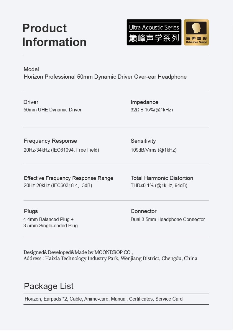 Total Harmonic Distortion: THD≤0.1% (@1kHz, 94dB)