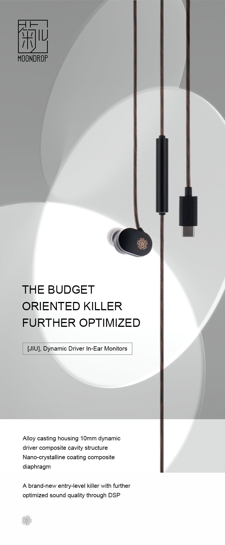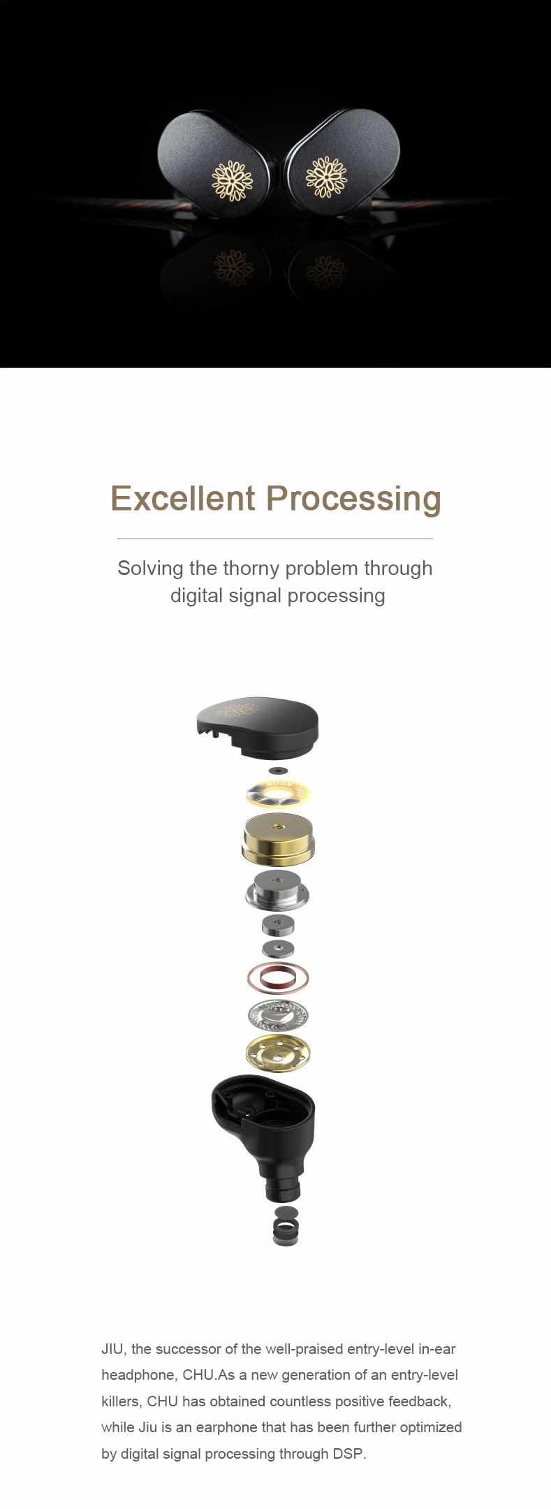 2.JIU, the successor of the well-praised entry-level in-ear headphone, CHU.As a new generation of an entry-level killers, CHU has obtained countless positive feedback, while Jiu is an earphone that has been further optimized by digital signal processing through DSP.