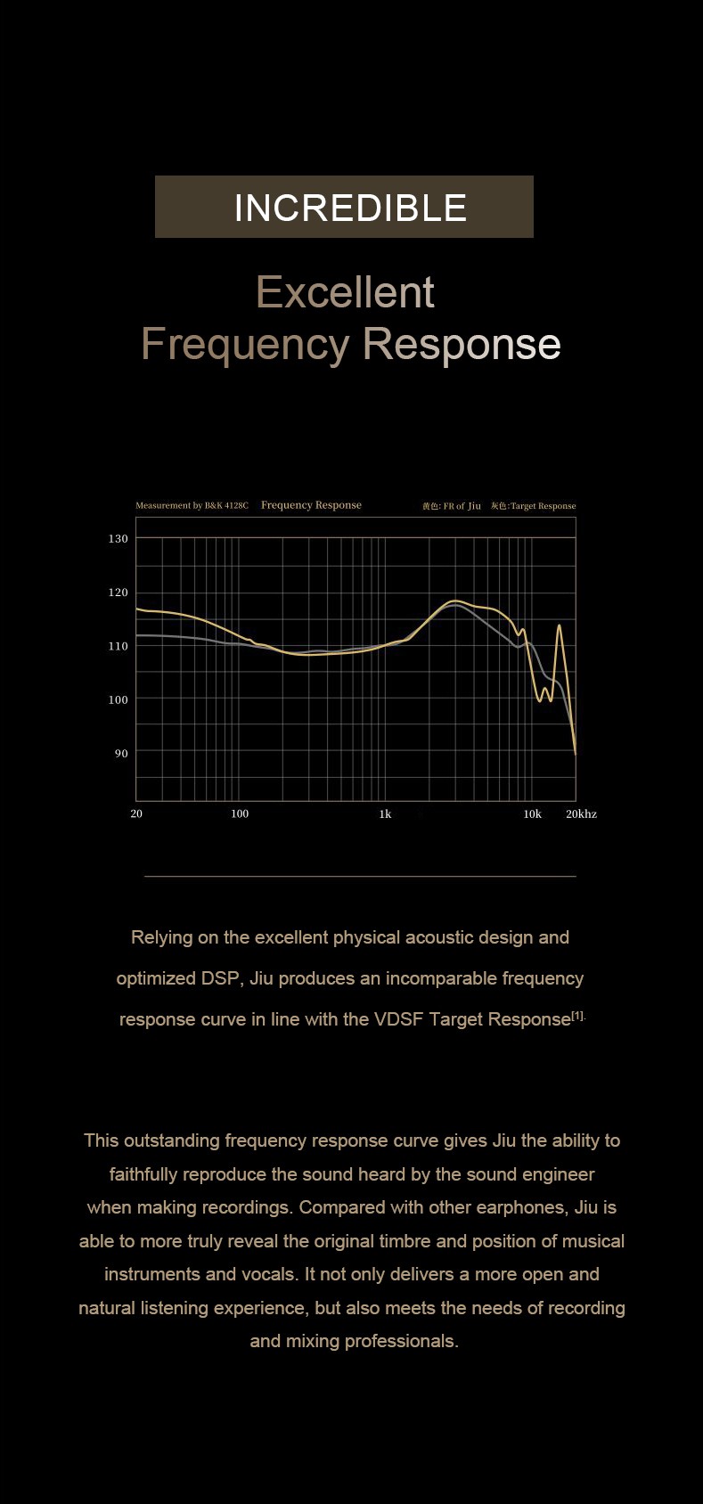 5. Relying on the excellent physical acoustic design and optimized DSP, Jiu produces an incomparable frequency response curve in line with the VDSF Target Response[1].