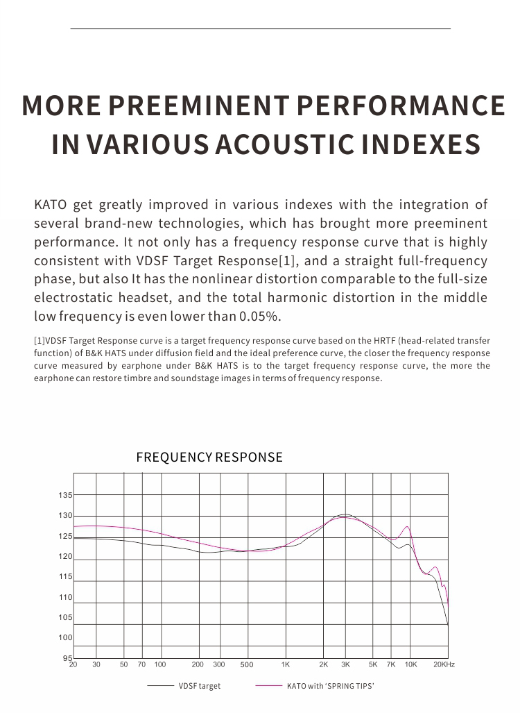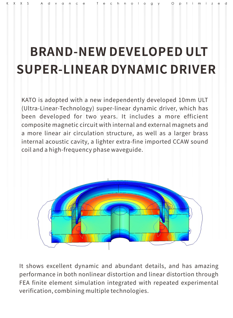 6. The acoustic front cavity of KATO isdemonstrated and calculated based on the characteristics of the driver, withhelp of the volume and structure simulated by FEA finite element simulation,and the verification and improvement by repeated experimental, presenting anexcellent frequency response and high-frequency phase performance.