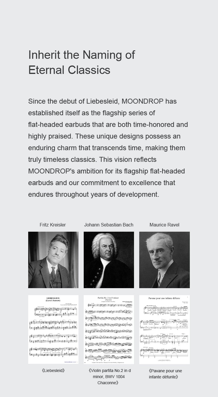 Since the debut of Liebesleid, MOONDROP has established itself as the flagship series of flat-headed earbuds that are both time-honored and highly praised. These unique designs possess an enduring charm that transcends time, making them truly timeless classics. This vision reflects MOONDROP's ambition for its flagship flat-headed earbuds and our commitment to excellence that endures throughout years of development.