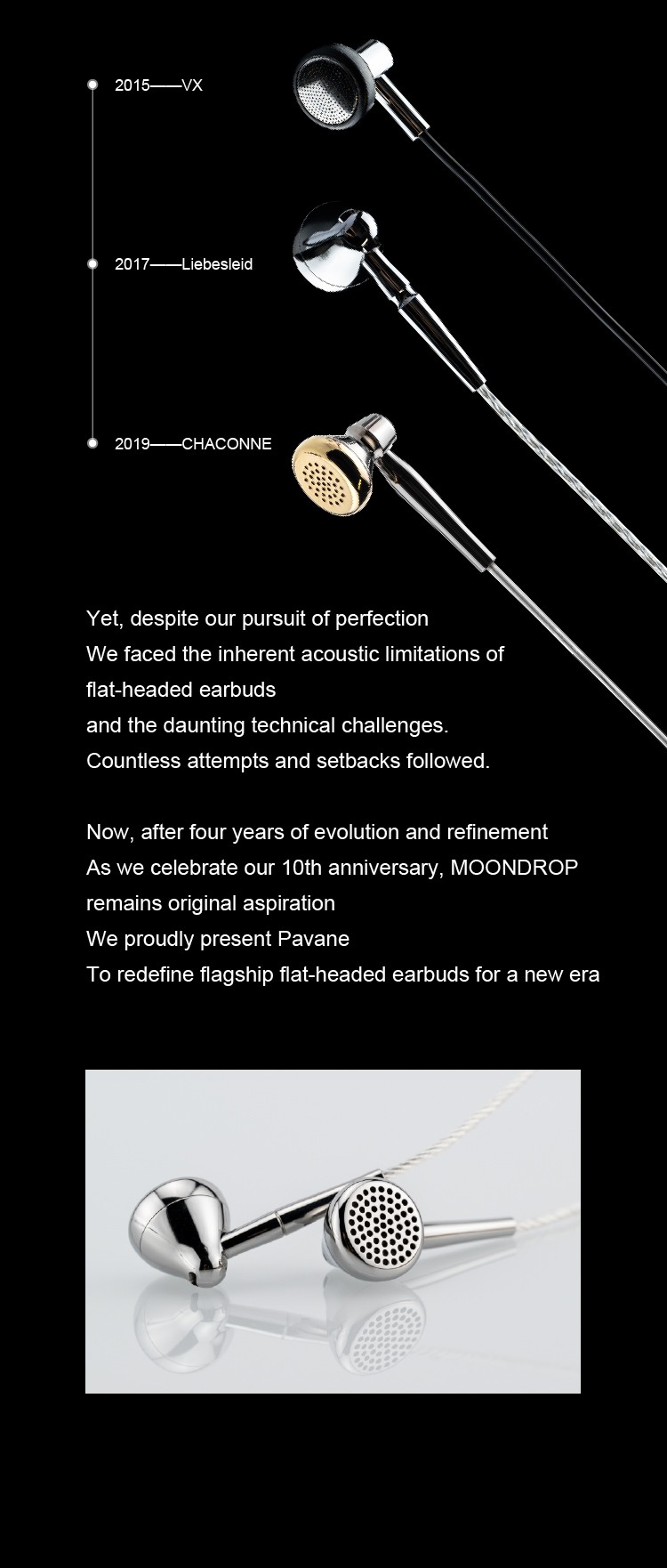 Pavane is a reaffirmation of our original vision for flagship flat-headed earbuds, and we aspire for it to become an eternal classic as well.