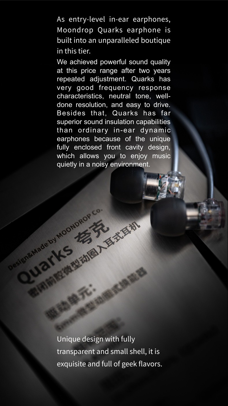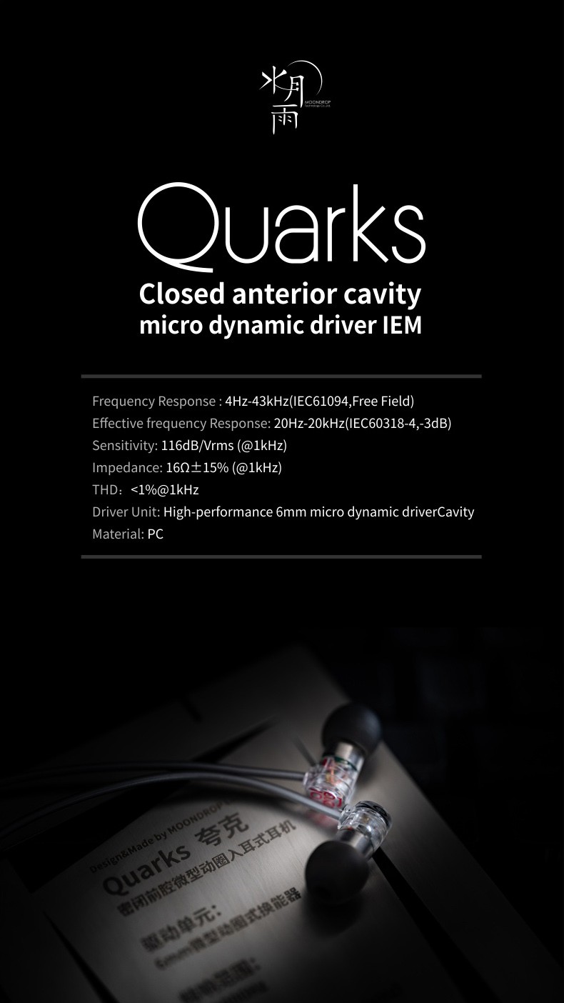 [QUARKS] Closed front cavity dynamic driver in-ear earphone