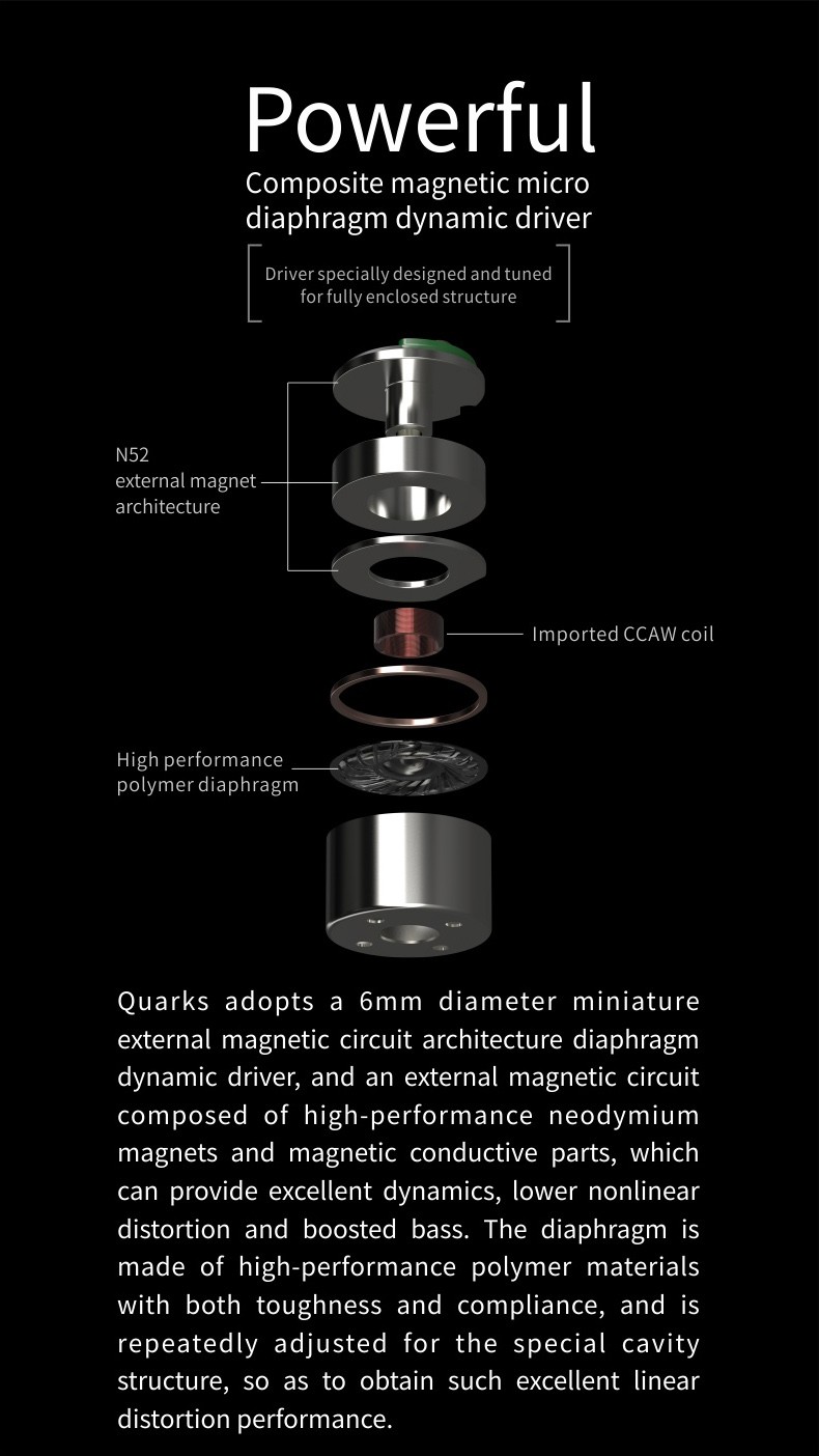 2. Specialized high-performance 6mm microexternal magnetic circuit structure dynamic driver.
