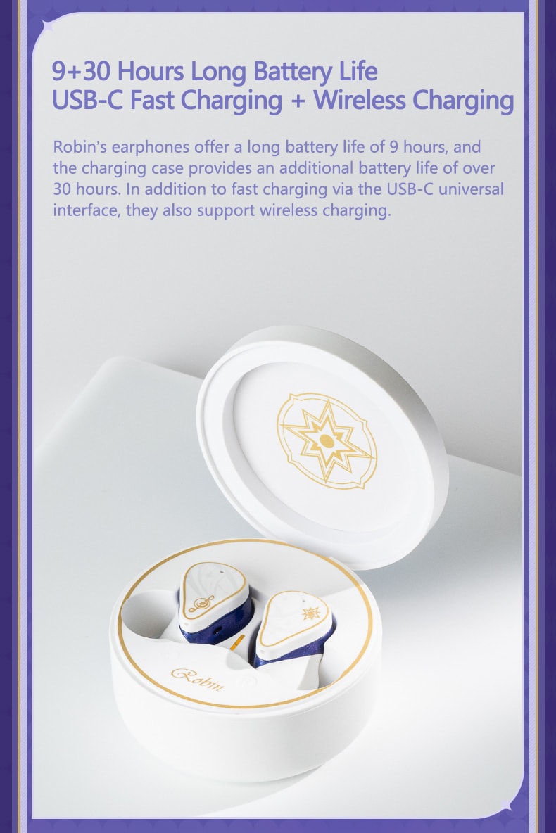 9+30 hours long battery life, USB-C fast charging + wireless charging