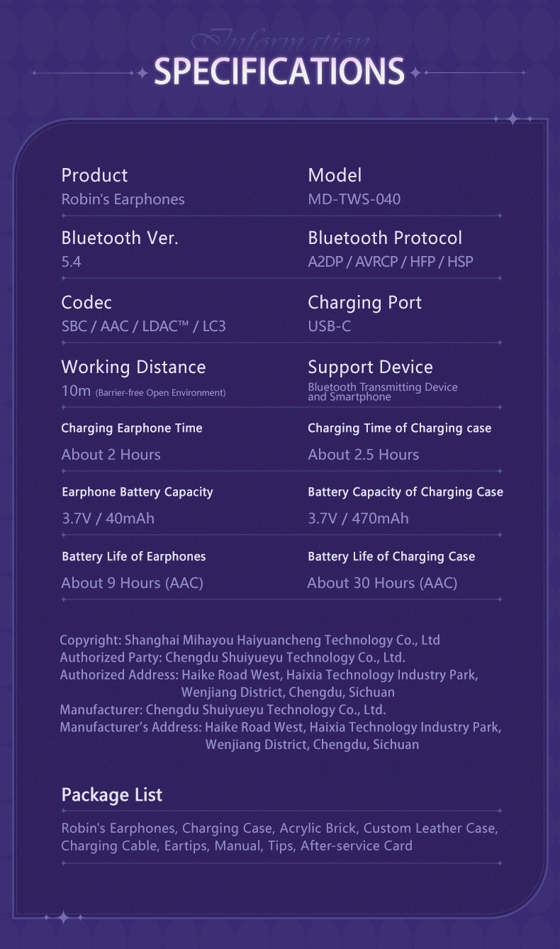 Battery Life of Earphones: About 9 Hours (AAC)
